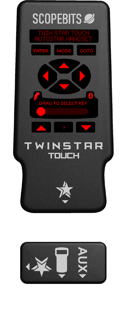 TWINSTAR Touch is a sleek, high-tech companion handset with a responsive touchscreen and a clear, night-friendly display that's easy to see and use in the dark. Designed to work alongside your Autostar or Audiostar system, it offers intuitive control, modern electronics, and optional joystick control. Use it hands-on, or pair it with the FREE ScopeBits app on Android or iOS for wireless control. Refined, reliable, and designed for modern observing, TWINSTAR Touch fits naturally into your setup.