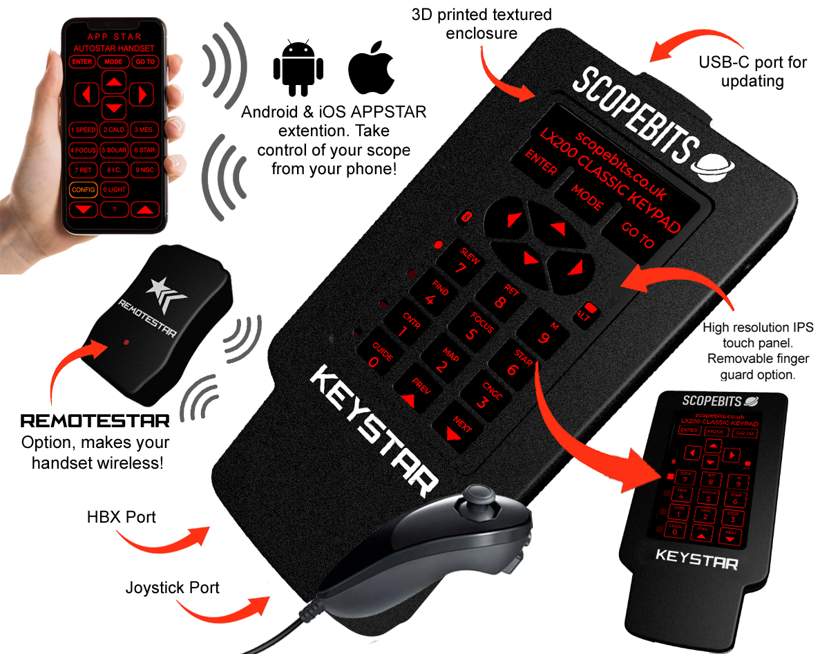 KEYSTAR TOUCH - Modern Control Meets Classic Power Finally, a controller that matches the tech in your telescope. KEYSTAR TOUCH features a crisp touchscreen with LX200 Classic keypad layout, optional joystick support for precise slewing and focus, and extended control via the FREE Android app. It's the ultimate upgrade - sleek, smart, and built for serious stargazing.