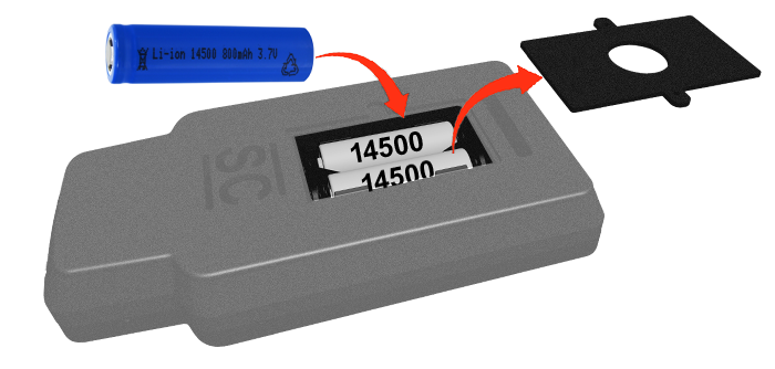 The KEYSTAR TOUCH uses 2 14500 3.7v battery cells (Not included). These are available in re-chargeable and non re-chargeable versions. Both will work just fine. Do not use AA batteries, as these do not have sufficent power to operate KEYSTAR TOUCH.